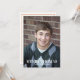This design features a graduation photo announcement card, graduate picture invitation, with the class of your year script, classic calligraphy typography font, a modern trendy stylish, for an elegant grad party, high school or college commencement, a simple orange and gold, senior invite, with 1 photo full bleed edge template