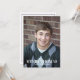 This design features a graduation photo announcement card, graduate picture invitation, with the class of your year script, classic calligraphy typography font, a modern trendy stylish, for an elegant grad party, high school or college commencement, a simple purple and gold, senior invite, with 1 photo full bleed edge template