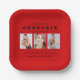 Three Photo Graduation Collage Red with Black Font Personalised Paper Plates.