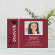 Start off you event right with our classy Burgundy Wine & Black photo graduation invitation / announcement. Perfect graduation invitation for a high school graduation or graduation. Just fill in your information add your photo and you're all set to go. Visit our shop at www.celebrateitgraduations.com for a large assortment of graduation invitations!