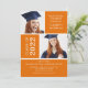 Start off you event right with our modern orange & white photo graduation invitation / announcement. Perfect graduation invitation for a high school graduation or college graduation. Just fill in your information add your photo and you're all set to go. Our graduation card is available in a large assortment of popular school colours.