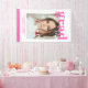 Photo Graduation Party Elegant Modern Script Banner Party Sign feature your favourite photo with the simple pink text "Grad (year)" and your name and personalised graduation details on the front. Perfect for the grad as a graduation gift or graduation party decor. Created by ©Evco Studio www.zazzle.com/store/evcostudio