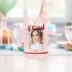 Photo Graduation Party Elegant Modern Script Can Glass Beer Tumbler feature your favourite photo with the simple burgundy text "Grad (year)" and your name and personalised graduation details on the front. Perfect for the grad as a graduation gift or graduation party decor. Created by ©Evco Studio www.zazzle.com/store/evcostudio
