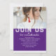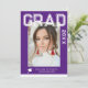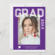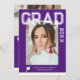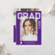 Photo Graduation Party Elegant Modern Script Invitations feature your favourite photo with the simple white text "Grad (year)" and your name and personalised graduation details on the front on a purple background. On the reverse add an additional picture with your graduation invitation information below. Personalise by editing the text in the text boxes provided. Created by ©Evco Studio www.zazzle.com/store/evcostudio