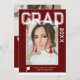 Photo Graduation Party Elegant Modern Script Invitations feature your favourite photo with the simple white text "Grad (year)" and your name and personalised graduation details on the front on a burgundy background. On the reverse add an additional picture with your graduation invitation information below. Personalise by editing the text in the text boxes provided. Created by ©Evco Studio www.zazzle.com/store/evcostudio