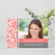 Graduation party invitation custom photo template card in elegant and sophisticated peach orange pink, grey and white classic vintage floral damask pattern. Customise this grad announcement card by adding the year of your graduation, your photo, and your graduation party details.