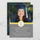 Graduation party invitation custom photo card in bright lemon yellow, dark charcoal grey and white modern design. Customise this grad photo card by adding the year of your graduation, your own photos, and your graduation party details.