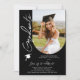 Photo Graduation Party Modern Elegant Script Invitations features your favourite photo with the text "Graduate" in elegant calligraphy script typography on a black background. Add your graduation invitation information below. Personalise by editing the text in the text boxes provided. Send as an instant digital download, as a physical invitation by mail or both. Created by ©2025 Evco Studio www.zazzle.com/store/evcostudio