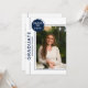Photo Graduation Party Modern Script Blue White Invitations feature your favorite photo with the simple text "Graduate" and your graduation party invitation information on the reverse. Personalize by editing the text in the text boxes provided and adding your favorite photo. Created by ©Evco Studio www.zazzle.com/store/evcostudio