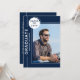 Photo Graduation Party Modern Script Blue White Invitations feature your favourite photo with the simple text "Graduate" and your name and personalised graduation details. Personalise by editing the text in the text boxes provided and adding your favourite photo. Personalise with your graduation invitation information on the reverse. Created by ©Evco Studio www.zazzle.com/store/evcostudio
