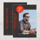 Photo Graduation Party Modern Script Red Gray Invitations feature your favorite photo with the simple text "Graduate" and your graduation party invitation information on the reverse. Personalize by editing the text in the text boxes provided and adding your favorite photo. Created by ©Evco Studio www.zazzle.com/store/evcostudio