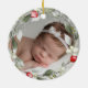 This ceramic Ornament design features a illustration of elegant greenery watercolor wreath decorated red holly berries . On the back side, add your photo.