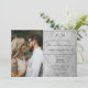Timeless elegance meets personal charm in this Photo Grey Damask Monogram Wedding Invitation featuring a romantic damask pattern, delicate lace background, and a favourite photo of the bride and groom. A sophisticated monogram adds a personalised touch, while elegant script and modern typography highlight your wedding details with style. The clean, simple layout balances ornate textures with a contemporary feel, making it the perfect choice for couples seeking refined monogram wedding stationery with classic flair.