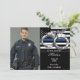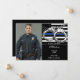 A bold, modern police graduation design featuring metallic handcuffs layered over a black-and-white American flag. The grayscale patriotic theme creates a strong, commanding look while allowing the graduate’s portrait and details to stand out clearly. Perfect for celebrating a new police academy graduate with a clean, masculine, professional aesthetic.