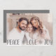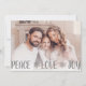 Sending out a personalised holiday photo card of your family with our Peace, Love, Joy Christmas greeting in grey.