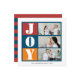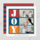 This photo holiday card features a bright colour photo frame with a combination of red, navy blue and orange colours and the inscription joy. The back side of this card features red and navy blue strip. Upload your favourite photos, sign your last name and you're done!