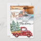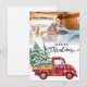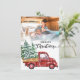 Photo holiday with red truck and christmas tree card