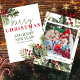 Photo Holly and Pine Red Berries White Christmas Card with a beautiful spray of holly, red berries and pine on the party invitation for a festive Holiday party.