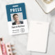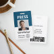 Personalise these vertical press pass badges with journalist or reporter photo and name, along with two lines of additional custom text for title or role, media outlet, or valid through date. Customise with company or media outlet logo. PRESS appears at the top in bold white lettering. Additional custom text field located on the back for return information or other details, as well as a template for a barcode or a QR code.