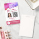 Easily edit this template to upload your own ID Photo, Vaccine, Barcode or QR Code and personal info. Great for any care worker, in-home care business or self-employed person. Plus 'kindly return' information on the back. Unique abstract art with watercolor shades in pink, purple and gold. Photo ID Vaccination Barcode QR Code Dusty Pink Badge.