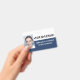 This stylish dark blue photo, logo, employee badge is easily customizable with your logo, name, job title, and photo. You can add more information to the back.
