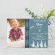 A blue grey lumberjack themed party invitation for a boy's 4th birthday party. Insert your vertical sized photo of the birthday boy! Templates for name, age four 4 and party details.