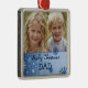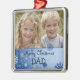 Merry christmas dad ornament customisable with your own family photo in elegant blue and white festive snowflakes pattern. A great christmas gift for dad this holiday season.