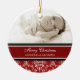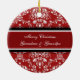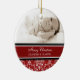 Merry christmas grandma and grandpa ornament customisable with your own family photo in elegant red, black and white classic floral damask pattern. A stylish christmas gift for grandpa and grandma this holiday season.