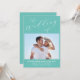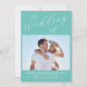Wedding photo minimalist teal calligraphy script wedding invitations.