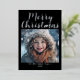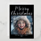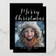 Photo Modern Black Merry Christmas Foil Holiday Card