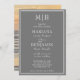 Modern photo boho grey grey lined border minimalist wedding invitations templates with initials at the top for you to customise.