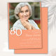Photo modern minimalist peach 80th birthday party invitation for a fun birthday party. Age can be changed. This invitation is simple and elegant, adult milestone birthday invitation for men and women. The peach background colour can be changed to any colour of your choice using the design tool.