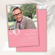 Photo modern minimalist pink 50th birthday party invitation for a fun birthday party. Age can be changed. This invitation is simple and elegant, adult milestone birthday invitation for men and women. The pink background colour can be changed to any colour of your choice using the design tool.