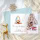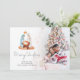 Photo Overlay Nativity Scene Script Merry Christmas. Simply replace the sample photo with your own and personalise with your greeting and names at the bottom. Merry Christmas is in a stylish set script and a simplistic nativity scene illustration of Mary, Joseph and baby Jesus is above the greeting and your names.