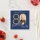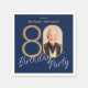 Photo Navy Blue Gold Elegant Custom 80th Birthday Napkin