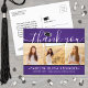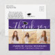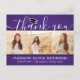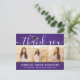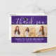 Send a stylish note of gratitude with custom 3 photo collage purple, white and black graduation thank you postcards. All pictures and wording are simple to personalise. (IMAGE PLACEMENT TIP: An easy way to centre a photo exactly how you want is to crop it before uploading to the Zazzle website.) This template can be customised with any wording of your choice such as future education plans, new job position or favourite inspirational quote. If you prefer to hand write your message, simply delete the example text or use the extra space above the new address and contact info. Design features a purple ombre background, black & white mortar board cap, handwritten style script calligraphy, modern minimalist typography, and three photos of your choice, such as senior pictures or images from the commencement ceremony. These elegant personalised cards are a trendy and chic way to thank family and friends for sharing your graduation celebration. Congratulations to the graduate!