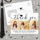 Send a stylish note of gratitude with custom 3 photo collage black and white graduation thank you postcards. All pictures and wording are simple to personalise. (IMAGE PLACEMENT TIP: An easy way to centre a photo exactly how you want is to crop it before uploading to the Zazzle website.) This template can be customised with any wording of your choice such as future education plans, new job position or favourite inspirational quote. If you prefer to hand write your message, simply delete the example text or use the extra space above the new address and contact info. Design features a black mortar board cap, handwritten style script calligraphy, modern minimalist typography, and three photos of your choice, such as senior pictures or images from the commencement ceremony. These elegant personalised cards are a trendy and chic way to thank family and friends for sharing your graduation celebration. Congratulations to the graduate!