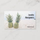 Business cards with a photograph featuring a pair of pineapples sitting on a sandy beach.