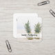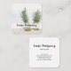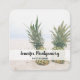 A business card with a photograph featuring a pair of pineapples sitting on a sandy beach.