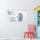 Poster with a cute photograph of a little snowman. Standing outside in the winter with snow falling all around. This cute little guy is dressed up in blue knitted hat and scarf.