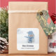 Christmas stickers with a cute photograph of a little snowman. Standing outside in the winter with snow falling all around. This cute little guy is dressed up in blue knitted hat and scarf. Personalise with a name.