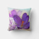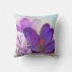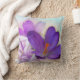 Pillow with a lovely photograph of a dark purple crocus set inside a glass jar.