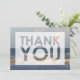 This bold, versatile design features a photo background you can change to your own picture if you like. The image I used is of the ocean as the sun starts to fall in the sky. Overlaying the photograph, I've placed a translucent rectangle that has "THANK YOU" cut out using a bold sans-serif font. The back was left blank for your personal message.