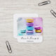 Business cards with a delicious photo featuring a stack of colourful macarons.