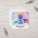 Business cards with a delicious photo featuring a stack of colourful macarons.