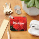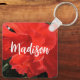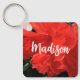 This keychain features a photo of a bright orange double hibiscus flower and a beautiful fancy script to customise the name.