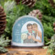 This personalised snow globe makes a beautiful gift for newlyweds. The teal front features the phrase “Our First Christmas” along with a dedicated space for a photo of the couple, as well as their names and wedding date. On the back, there’s room for a second photo and customisable text—perfect for including their names and their wedding date. Ideal for a keepsake holiday gift.