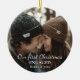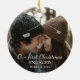 Photo Our First Christmas Engaged Whimsical Script Ceramic Ornament