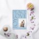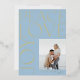 Elegant modern real gold foil typography Peace Love Joy custom photo light baby blue Christmas holiday card with your custom personalised picture text on both sides.