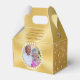 Photo Personalised, 50th Anniversary Favour Boxes. Type in Your, Thank You for Celebrating with Us, Message, Couple's Names, Date or YOUR TEXT or Delete. Fully Customisable Stunning, Gold Favour Boxes with Couple's Wedding or Anniversary Picture or DELETE it to EXPOSE a Diamond and Gold 50, Golden Heart Shaped Diamond design and this Design is on the Back. Golden Wedding Favour Boxes are for Any Elegant Favour Boxes for your Party Favours for 50th Wedding Anniversary.